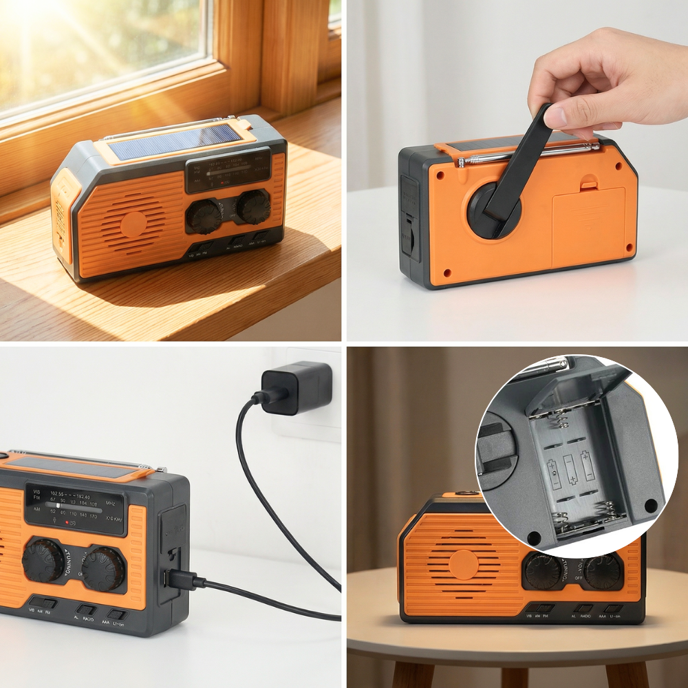 Bei Stromausfällen, Naturereignissen oder Outdoor-Aktivitäten vereint dieses Gerät Radioempfang, leistungsstarke Beleuchtung, SOS-Alarm und mobile Ladefunktion in einer kompakten, zuverlässigen Lösung.
