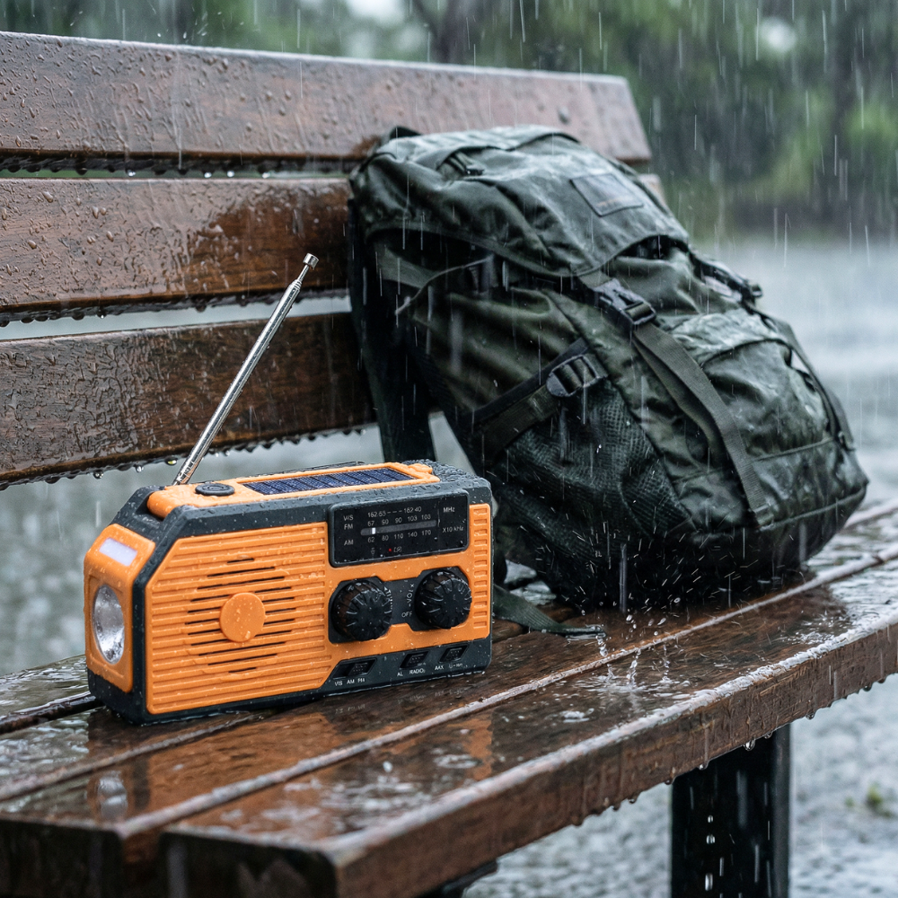4-in-1 Notfallradio mit Solar, Kurbel & Powerbank – für Blackout & Outdoor