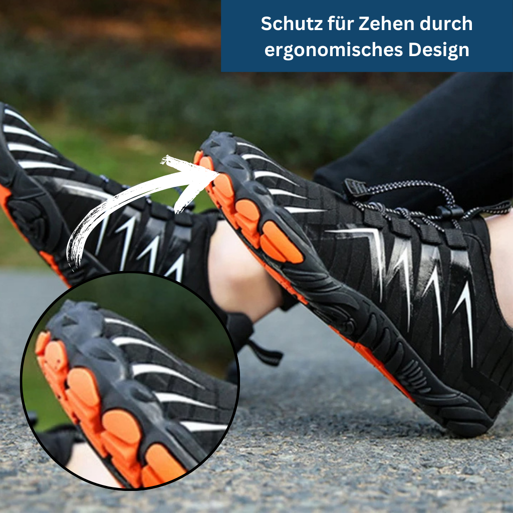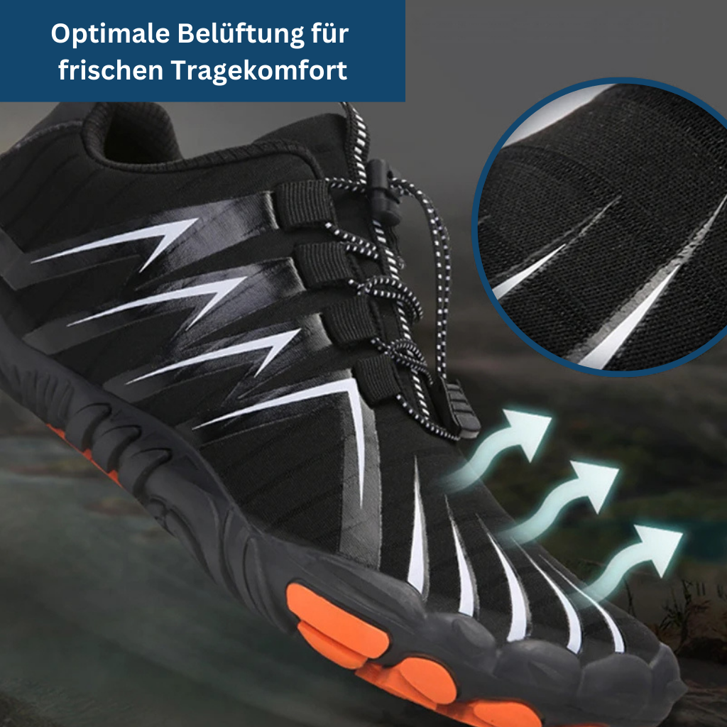 Das durchdachte Design der Adventure Barfußschuhe passt sich perfekt an deine Zehen an und minimiert das Risiko von Stößen und Verletzungen.