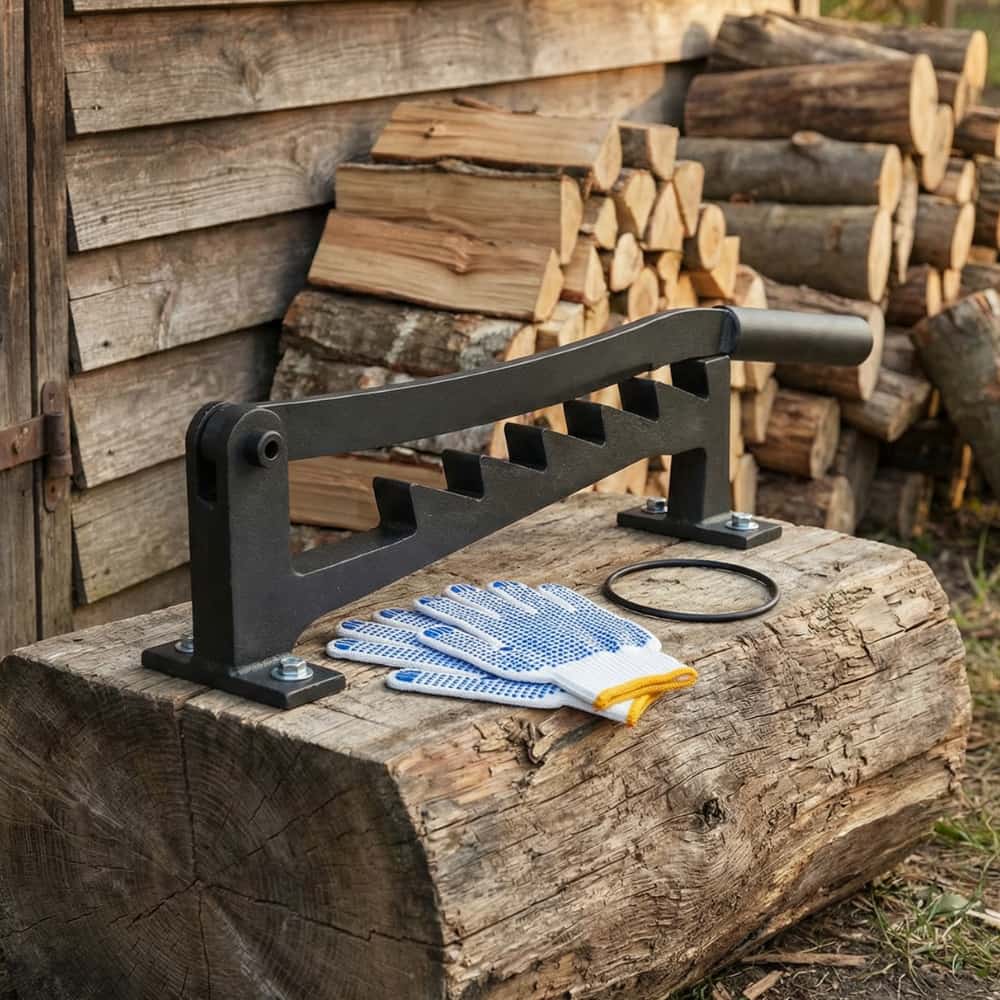 Du legst das Holz in die Nut, ziehst den Hebel nach unten, und die Klinge spaltet das Holz effizient und kontrolliert – ganz ohne Strom.