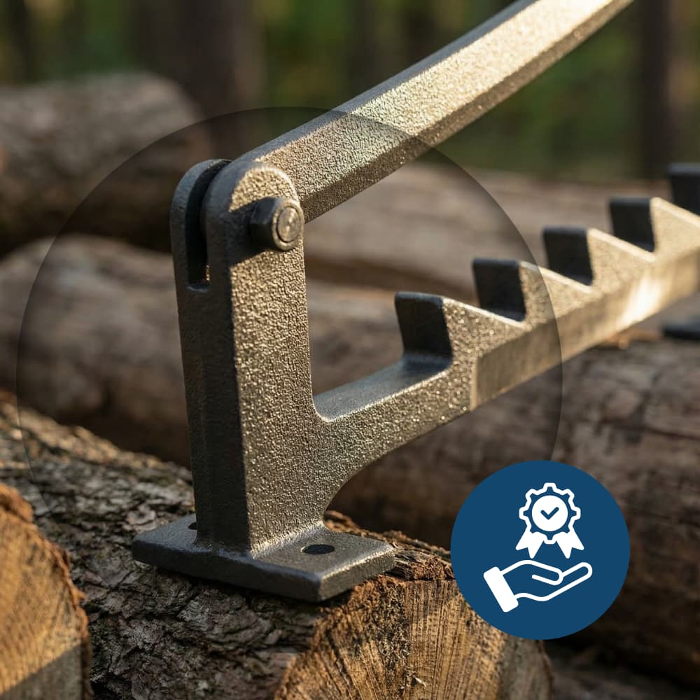 Gefertigt aus hochwertigem Stahlguss und versehen mit einer robusten Lackierung, überzeugt der Brennholzspalter durch hohe Stabilität, Verschleißfestigkeit und Korrosionsbeständigkeit.