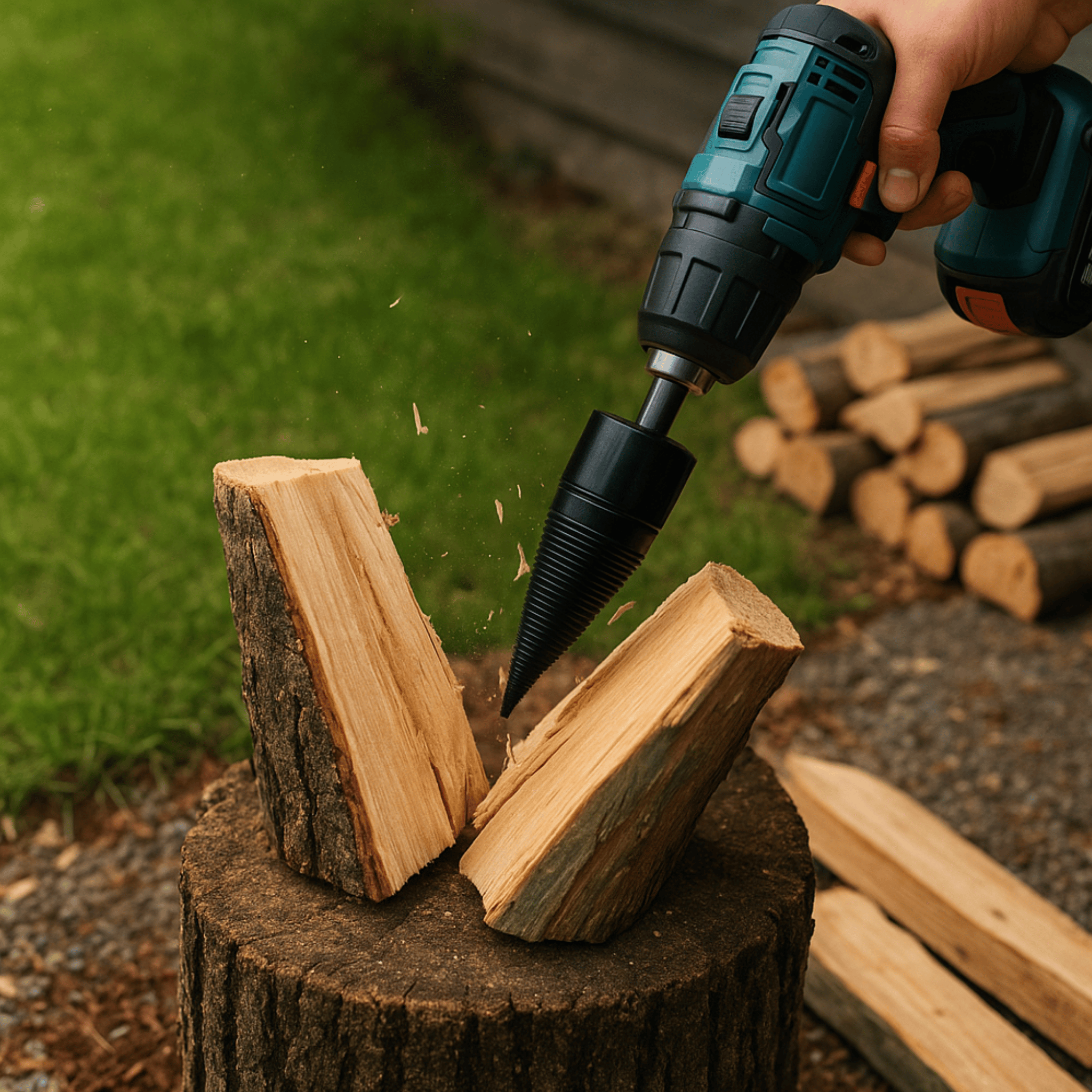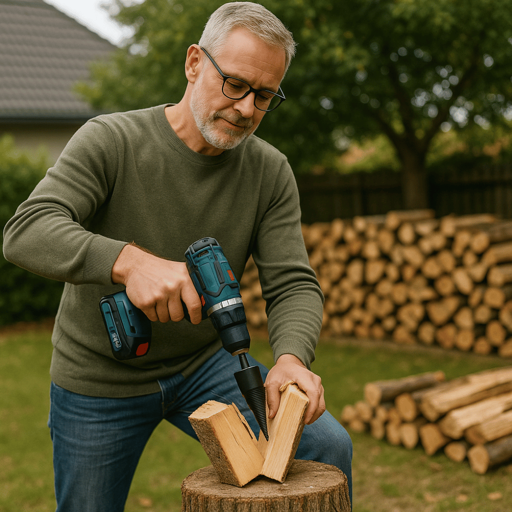 Ein leistungsstarker Akkuschrauber oder Bohrer reicht völlig aus. Eine höhere Drehzahl sorgt für noch effizienteres Spalten.