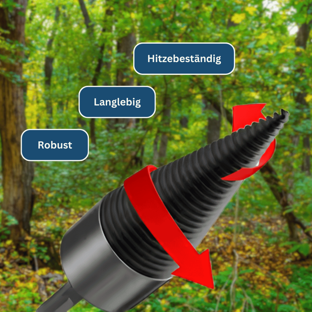 Mit dem EasyWoodSplit spaltest du Brennholz in Sekunden - ohne schwere Axtschwünge und ohne riskante Keilarbeit. Der präzise geformte Spaltkegel setzt kontrollierten Druck, frisst sich sauber ins Holz und teilt es mit beeindruckender Leichtigkeit.