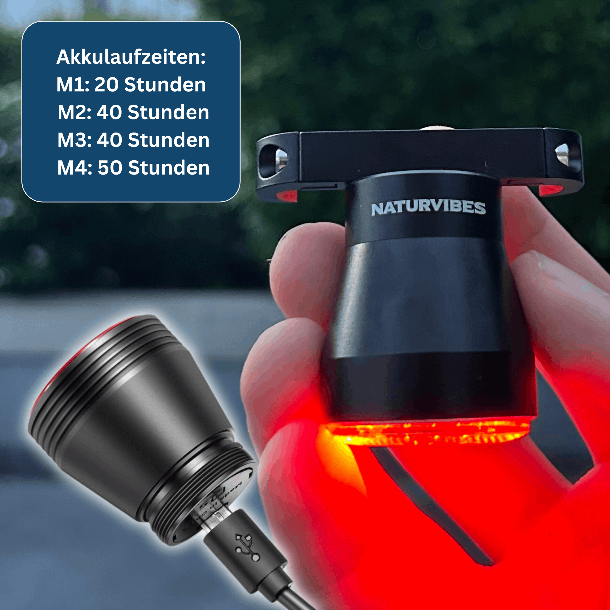 Somit kannst du dein NaturVibes Smartlight für dutzende Fahrradfahrten benutzen ohne es, wie das bei vielen herkömmlichen Fahrrad-Rücklichtern der Fall ist, nach jeder Fahrt aufladen zu müssen