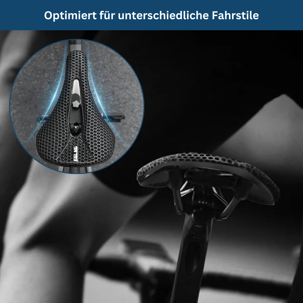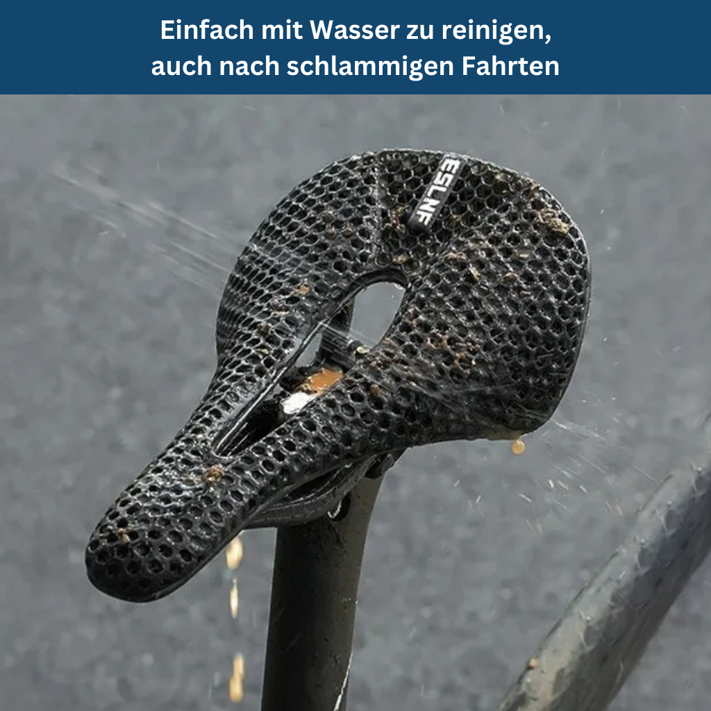 Der Sattel verfügt über eine einzigartige 3D-gedruckte Polsterung, die eine optimale Druckverteilung gewährleistet.