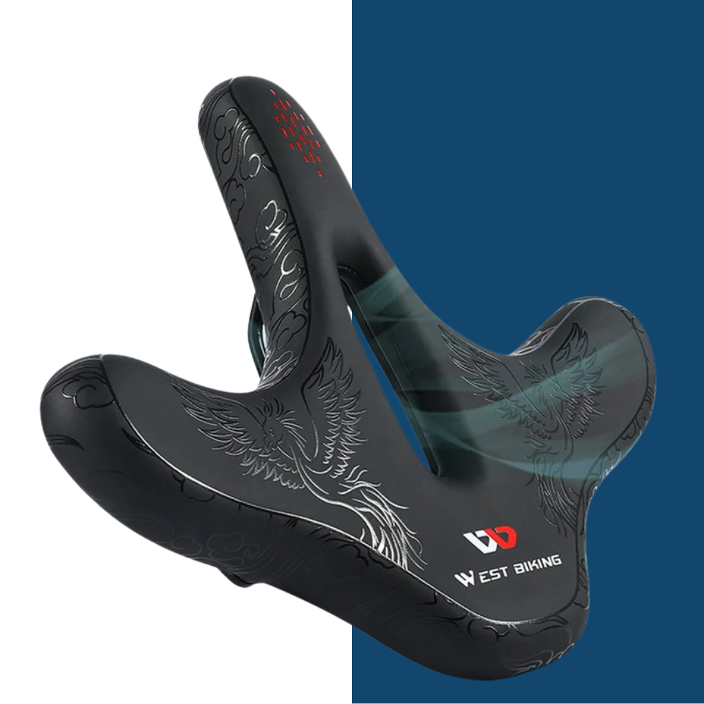Mit unserem NaturVibes Fahrradsattel Phönix radelst du durch die doppelte Breite, das einzigartige Design, dem Memory-Schaum und durch unser innovatives Stoßdämpfungssystem wie auf Wolken!