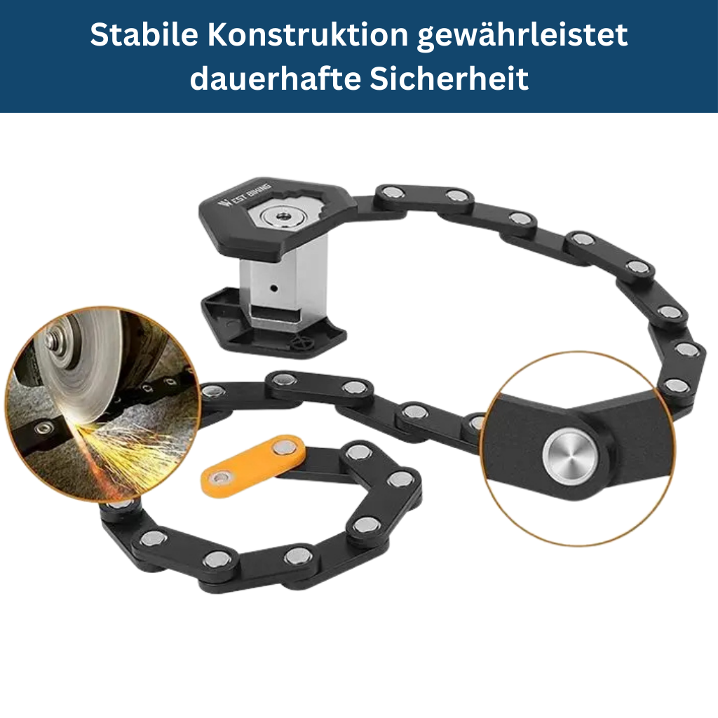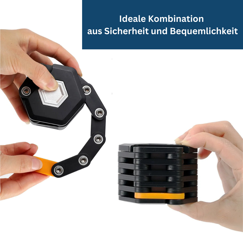 Erlebe maximale Freiheit und Flexibilität mit unserem faltbaren und platzsparenden Premium Fahrradschloss. Perfekt für dein aktives Leben konzipiert, lässt es sich mühelos zusammenfalten und entweder in deiner Tasche verstauen oder am Fahrradrahmen anbringen, ohne zusätzlichen Platz zu beanspruchen.