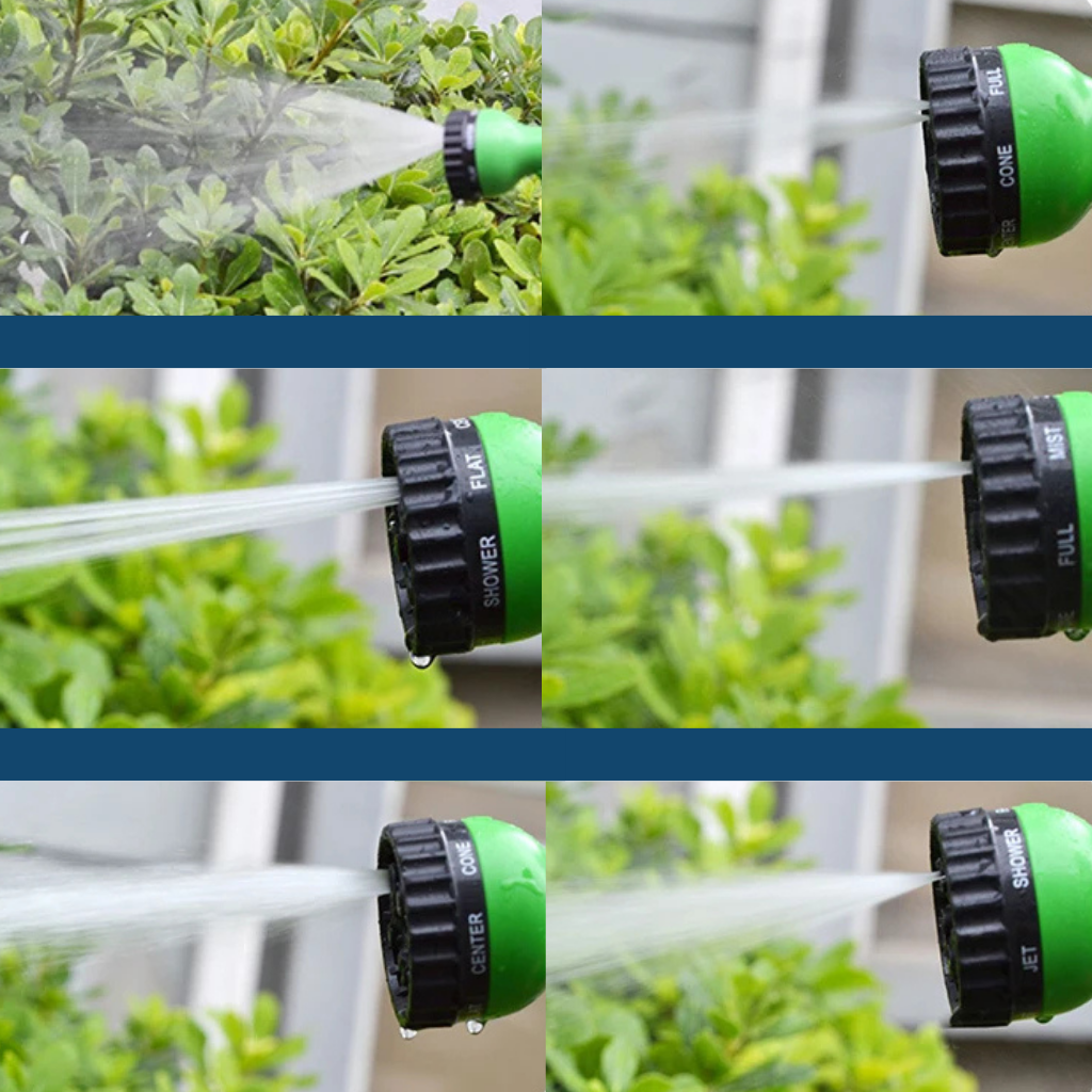Zum Gartenschlauch Flexy gehört ein Multifunktionssprühkopf mit verschiedenen Einstellungen. Wähle zwischen verschiedenen Sprühmodi, von sanftem Nebel bis hin zu kraftvollem Strahl, für eine präzise Anpassung an deine jeweilige Aufgabe. Perfekt für das Bewässern von Pflanzen, die Reinigung von Terrassen oder das Waschen von Fahrzeugen.