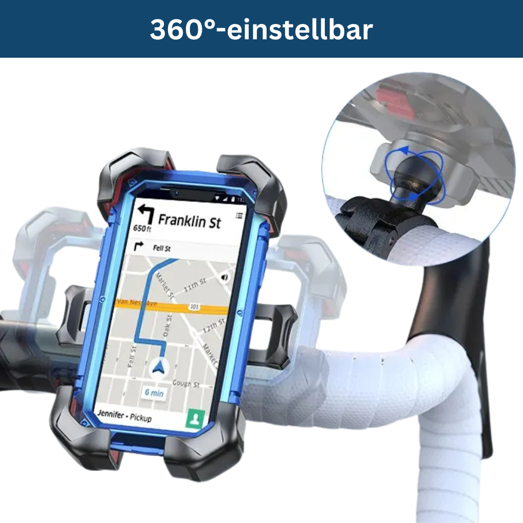 Mit unserer innovativen Handyhalterung PRO hast du dein Smartphone stets griffbereit und im Blick. Perfekt geeignet für jedes Fahrrad, sei es Citybike, Rennrad, Mountainbike, E-Bike, E-Scooter oder Motorrad.