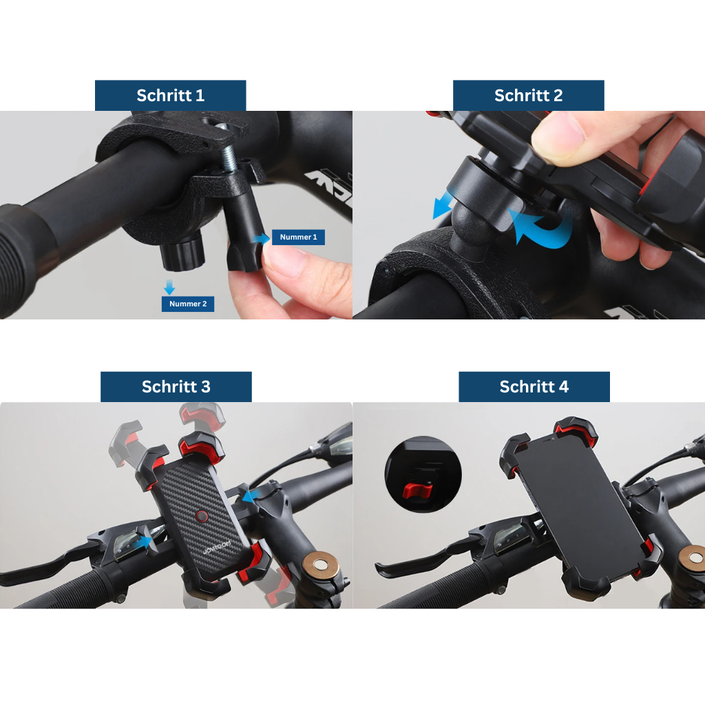 Die NaturVibes Handyhalterung PRO wird in vier einfachen Schritten befestigt: