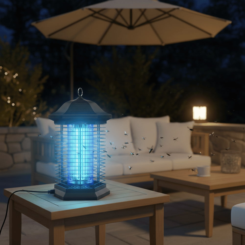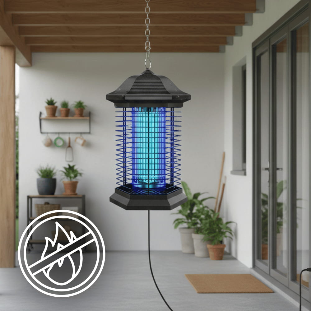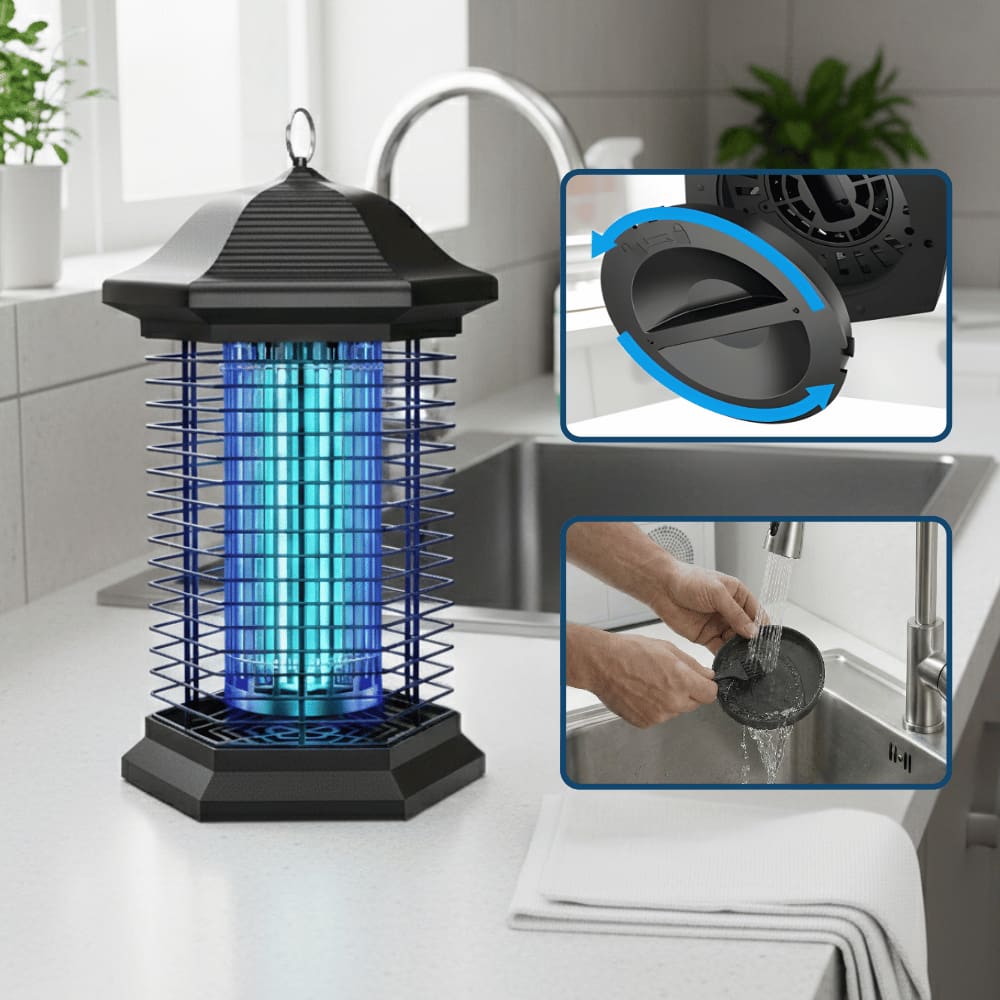 Das Gerät nutzt exklusive UVA-Lichtwellen, um Insekten anzulocken. Ein Hochspannungsnetz bis 4400 Volt eliminiert sie sofort beim Kontakt – ganz ohne Chemikalien oder Sprays.