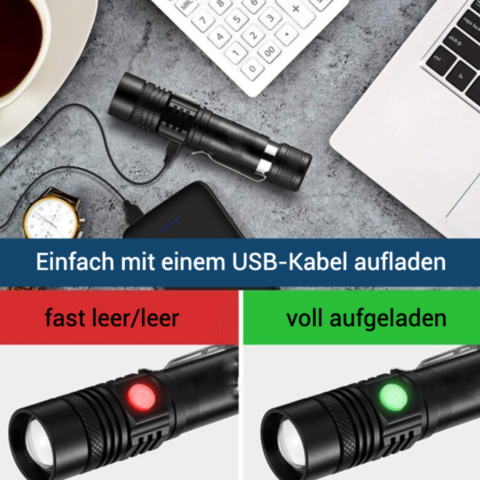 Beste Taschenlampe, die ich je hatte, da man sie immer wieder aufladen kann. Sie ist klein, handlich leicht und leuchtet sehr hell. Der Akku hält auch ziemlich lange. Ich kann diese Lampe sehr empfehlen!