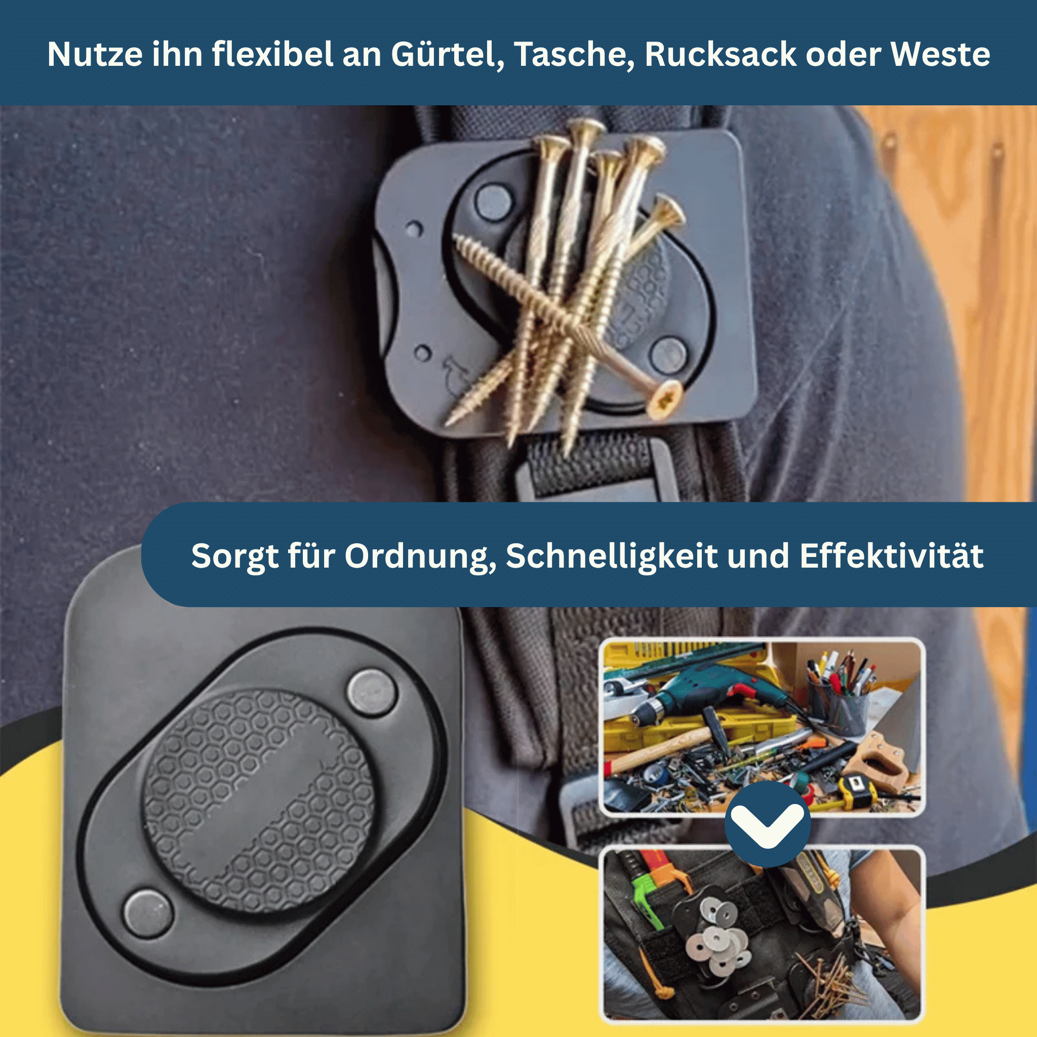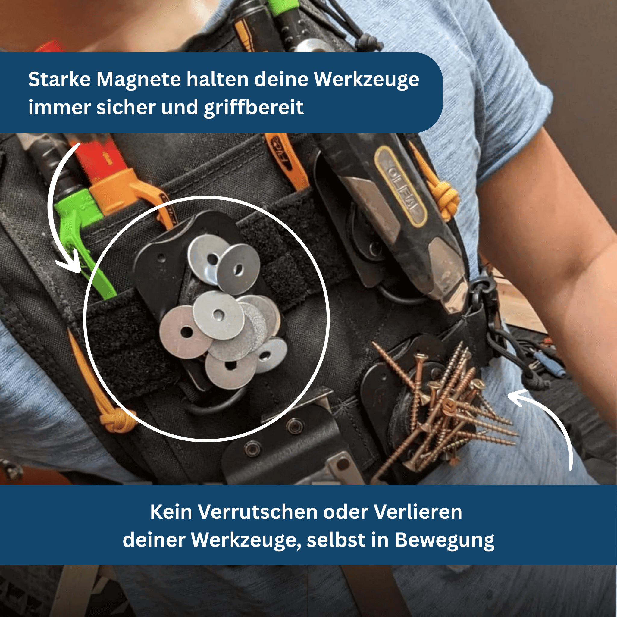 So bleiben deine Hände frei und du kannst Werkzeuge jederzeit schnell greifen oder wechseln.