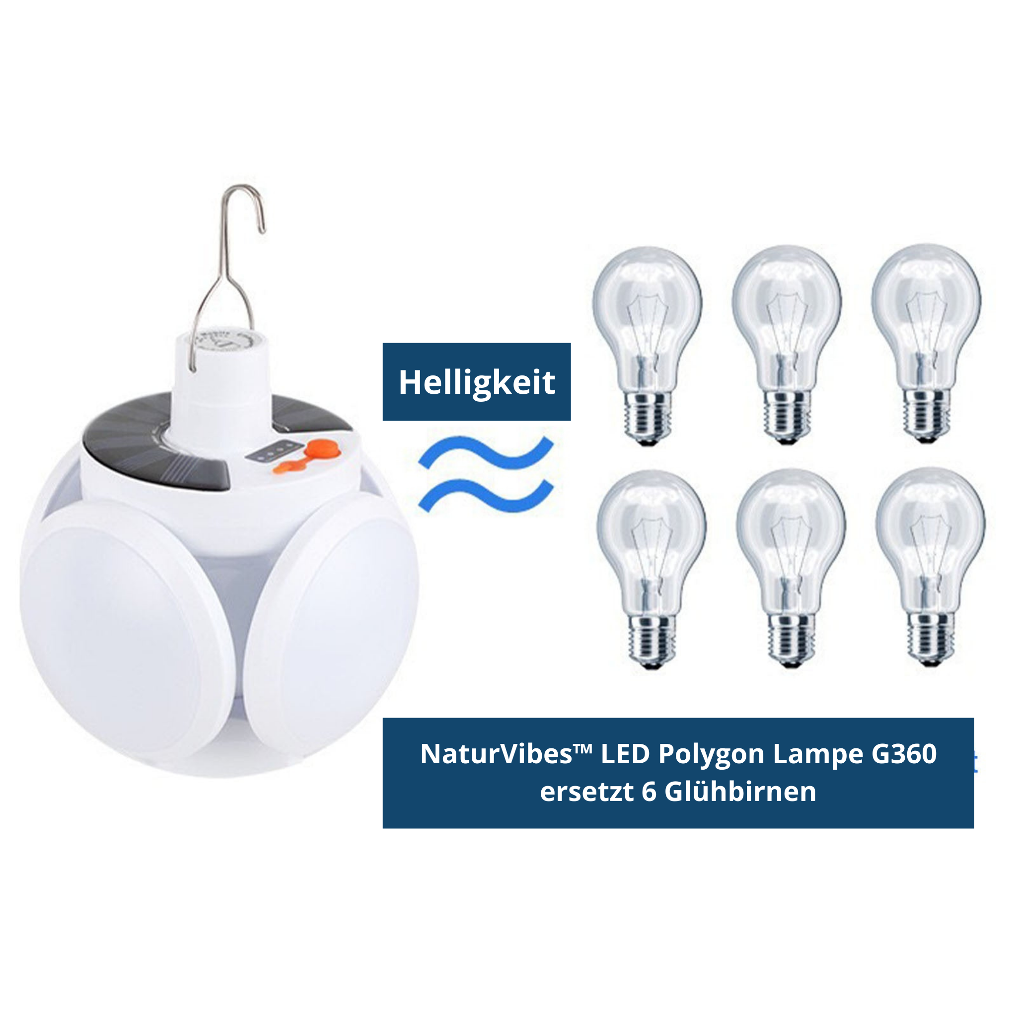 Mit unserer NaturVibes LED Polygon Lampe G360 hast du eine ultra helle und autarke Lichtquelle!