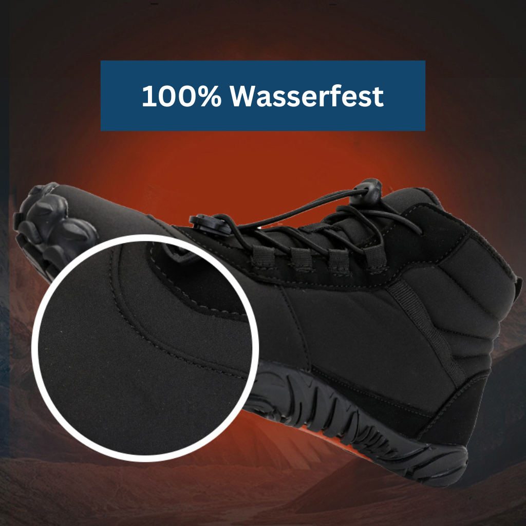 Unsere NaturVibes Barfußschuhe Polar sind aus speziellem wasserfestem Material gefertigt und trotzen selbst den kältesten und nassesten Wetterbedingungen.