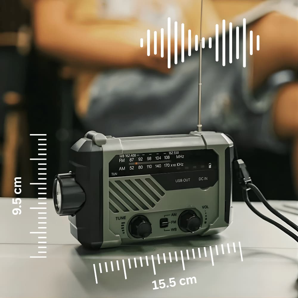 Das Radio empfängt FM-, AM- und WB-Frequenzen und bietet Zugriff auf 7 NOAA-Wetterkanäle. So bleibst du auch ohne Internet immer über Wetterwarnungen und Nachrichten informiert.