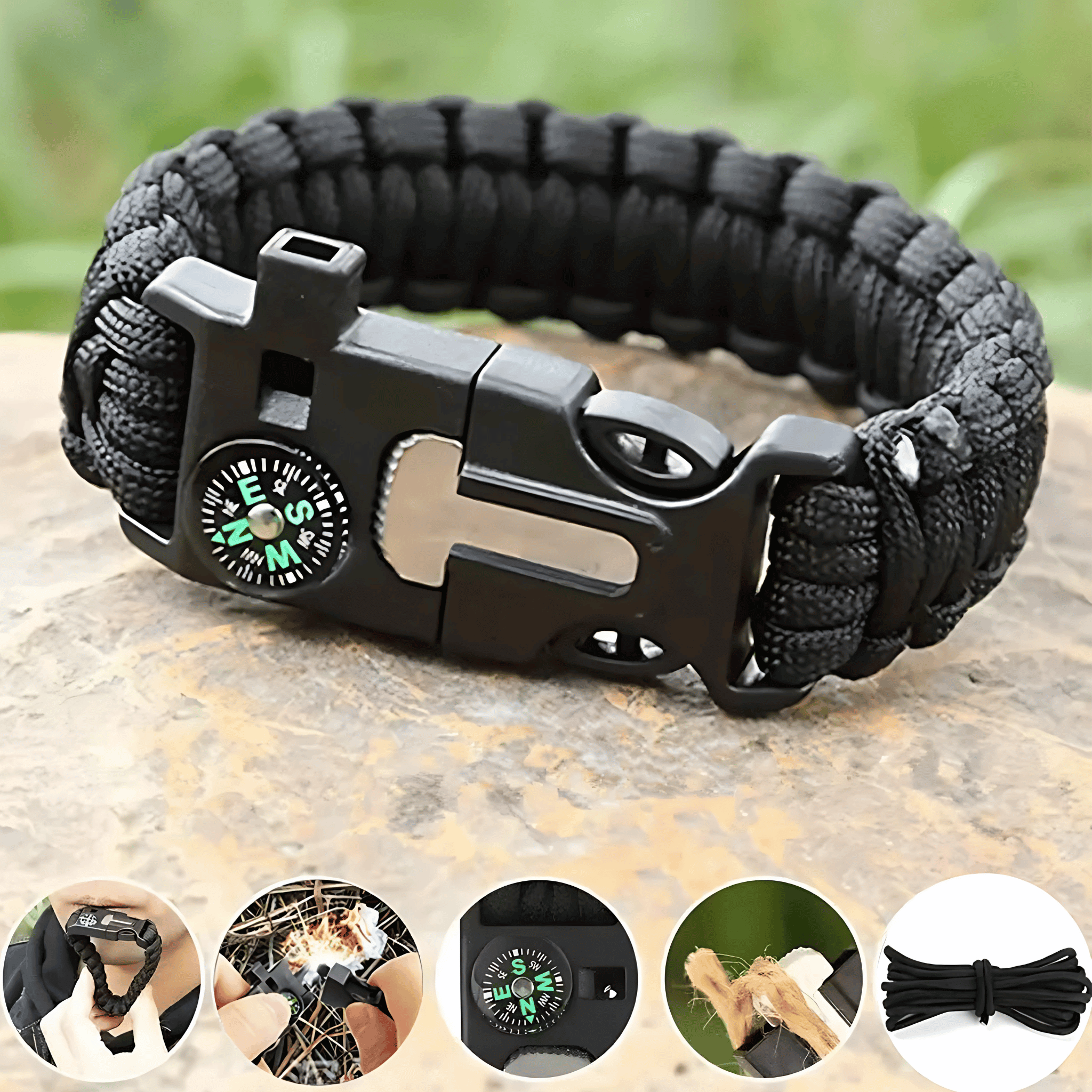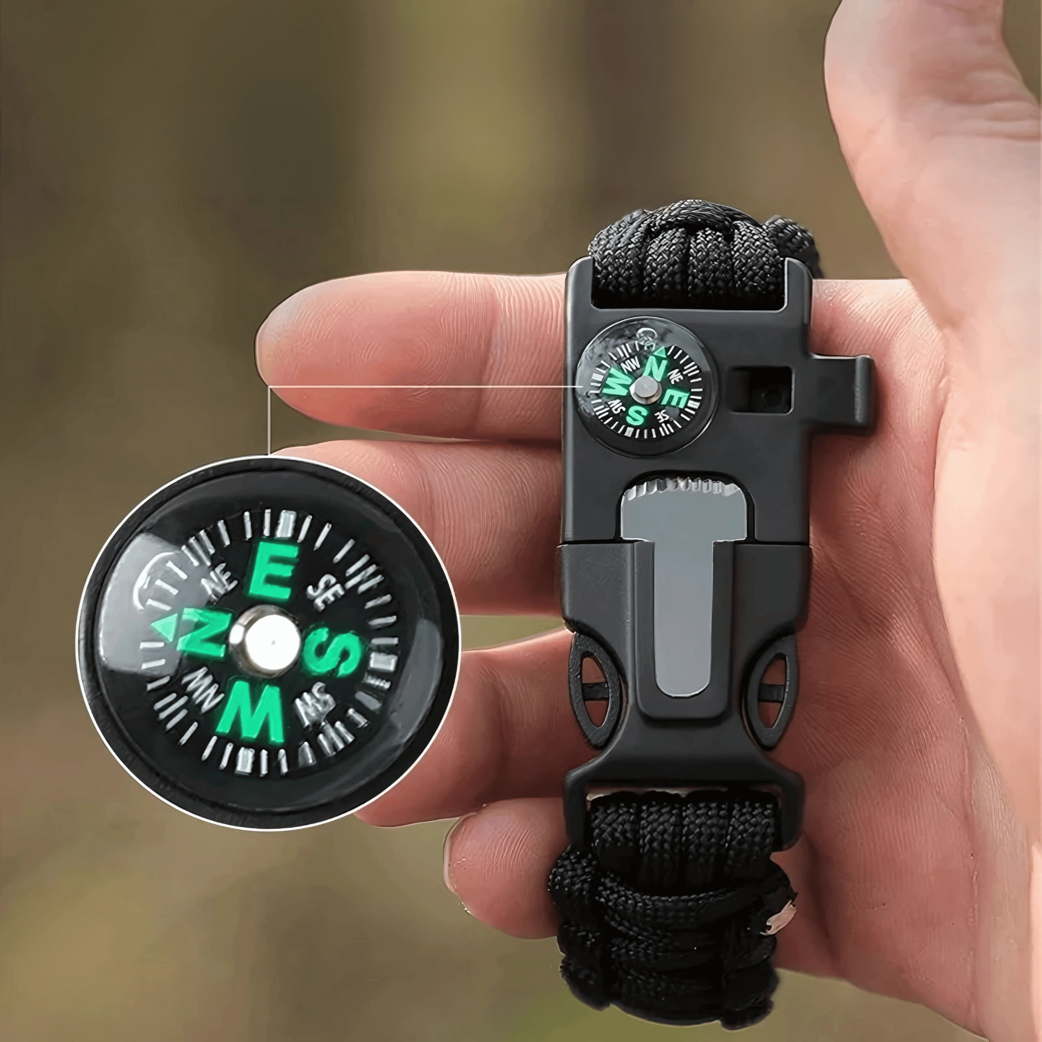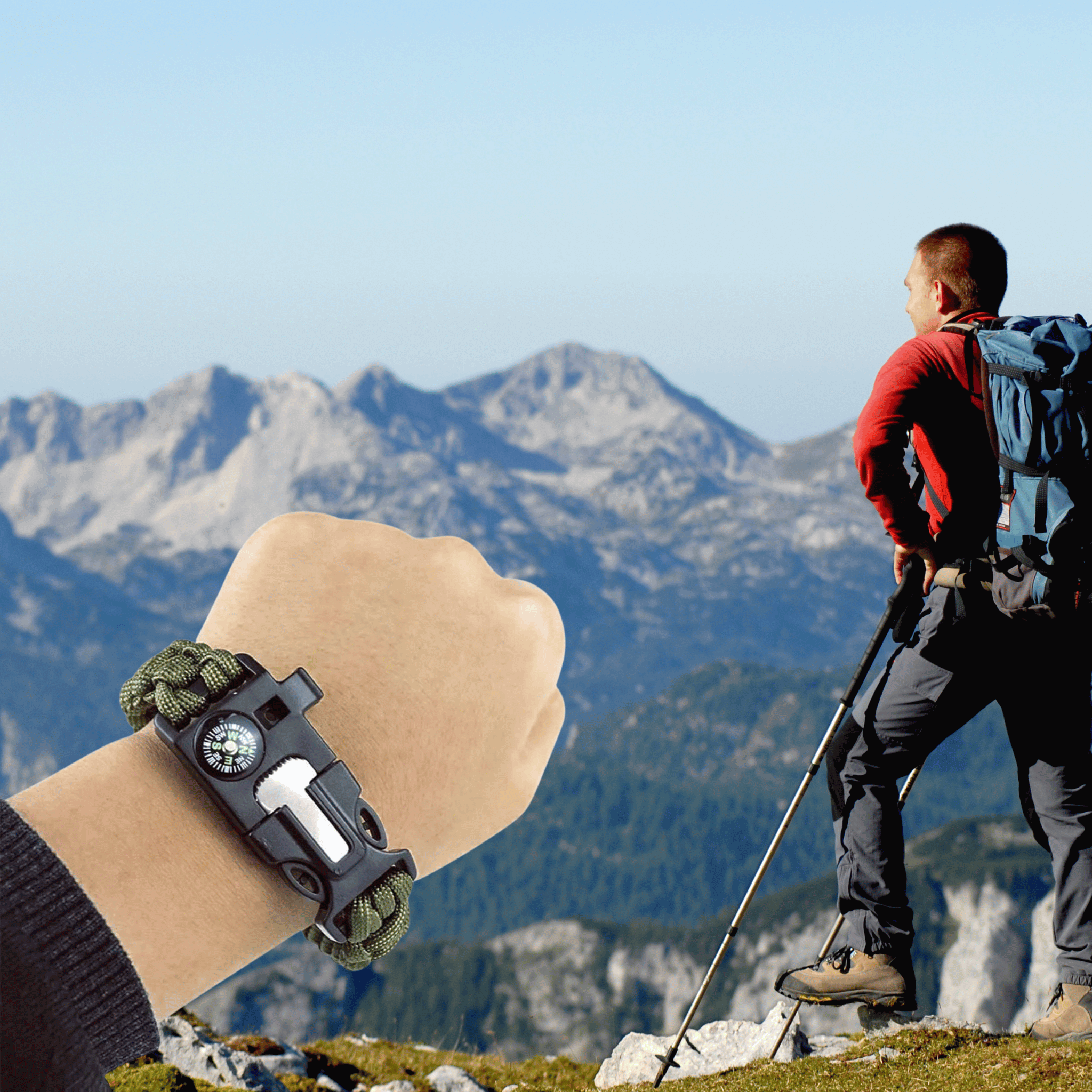 Dieses Armband ist ein echtes Multitool und ein stilvoller Begleiter zugleich. Perfekt für Wanderungen und Campingausflüge.