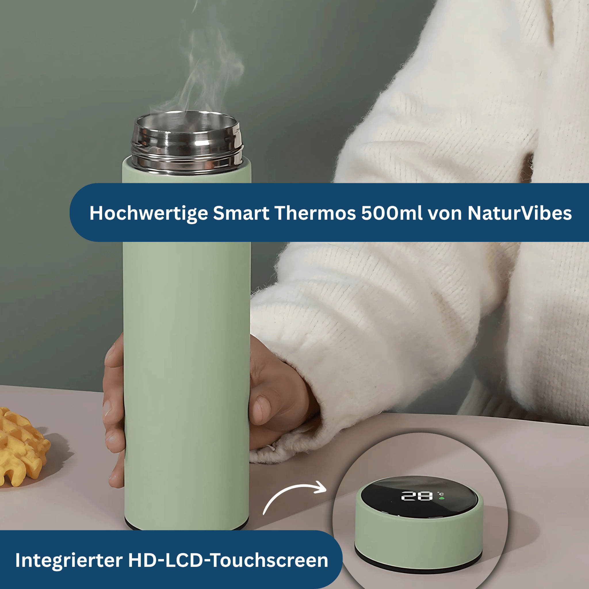 Mit der Smart Thermos 500ml von NaturVibes genießt du deine Getränke überall, zu Hause, im Büro oder unterwegs.