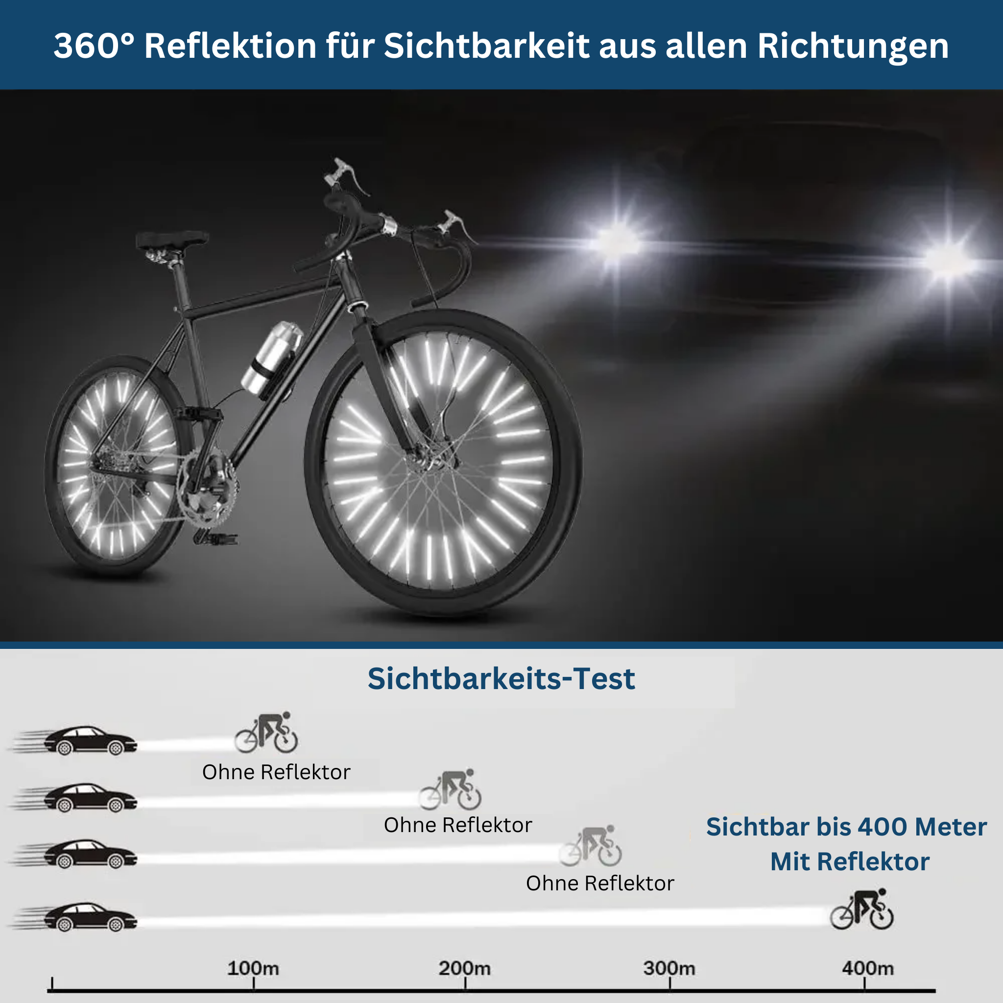 Egal, wie du angestrahlt wirst, dein Fahrrad bleibt gut erkennbar – für eine sichere Fahrt bei Dunkelheit.