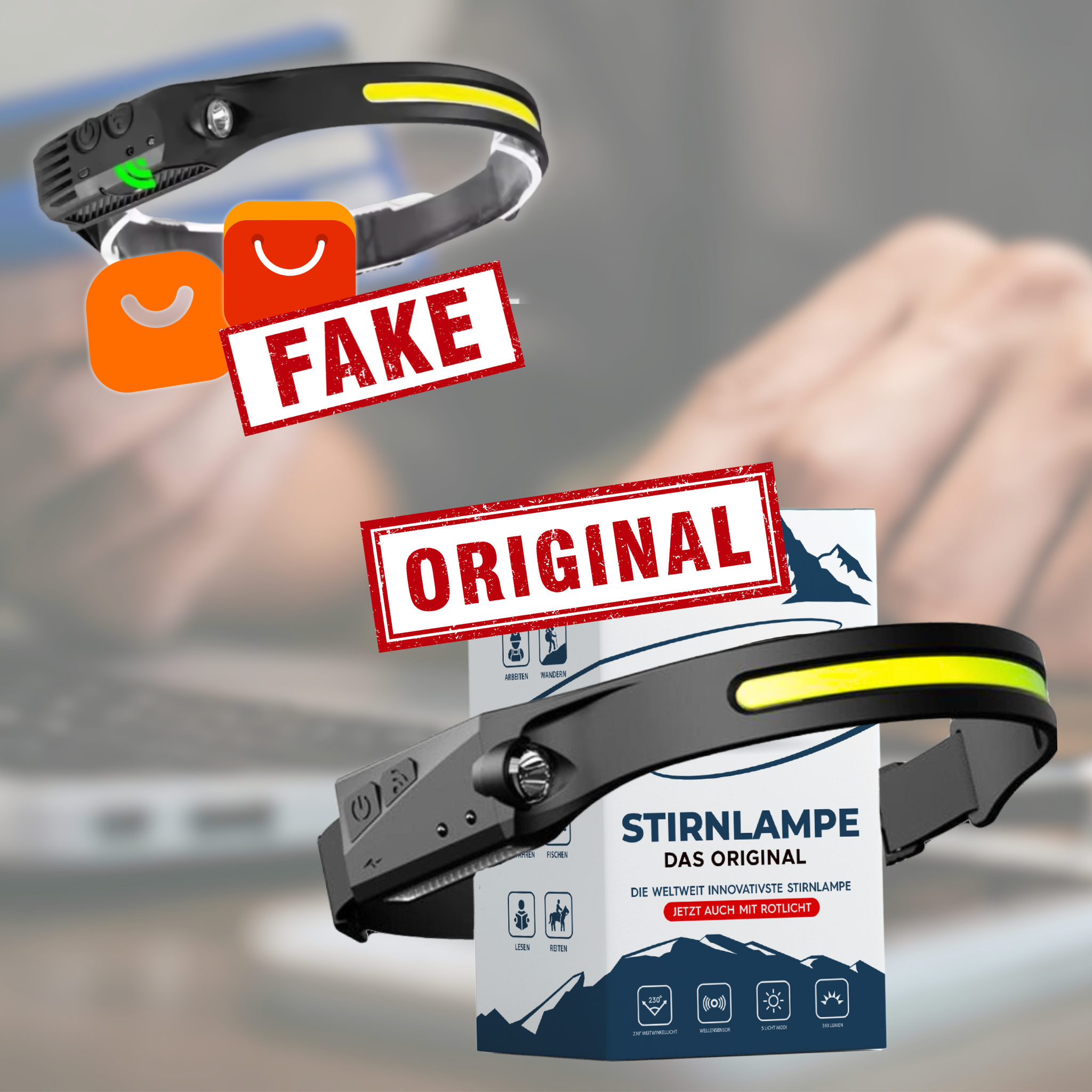 Lass dich nicht täuschen – viele Stirnlampen sehen aus wie unsere NaturVibes, sind aber billige Kopien! Minderwertige Materialien, schwache Helligkeit, kurze Akkulaufzeit und kein Rotlichtmodus sind die Folge.