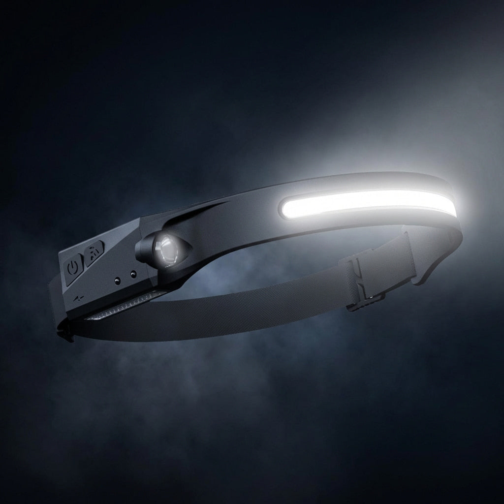 Das Besondere an unserer NaturVibes Stirnlampe ist der lange COB-Lichtstreifen, der entlang der Stirn integriert wurde.