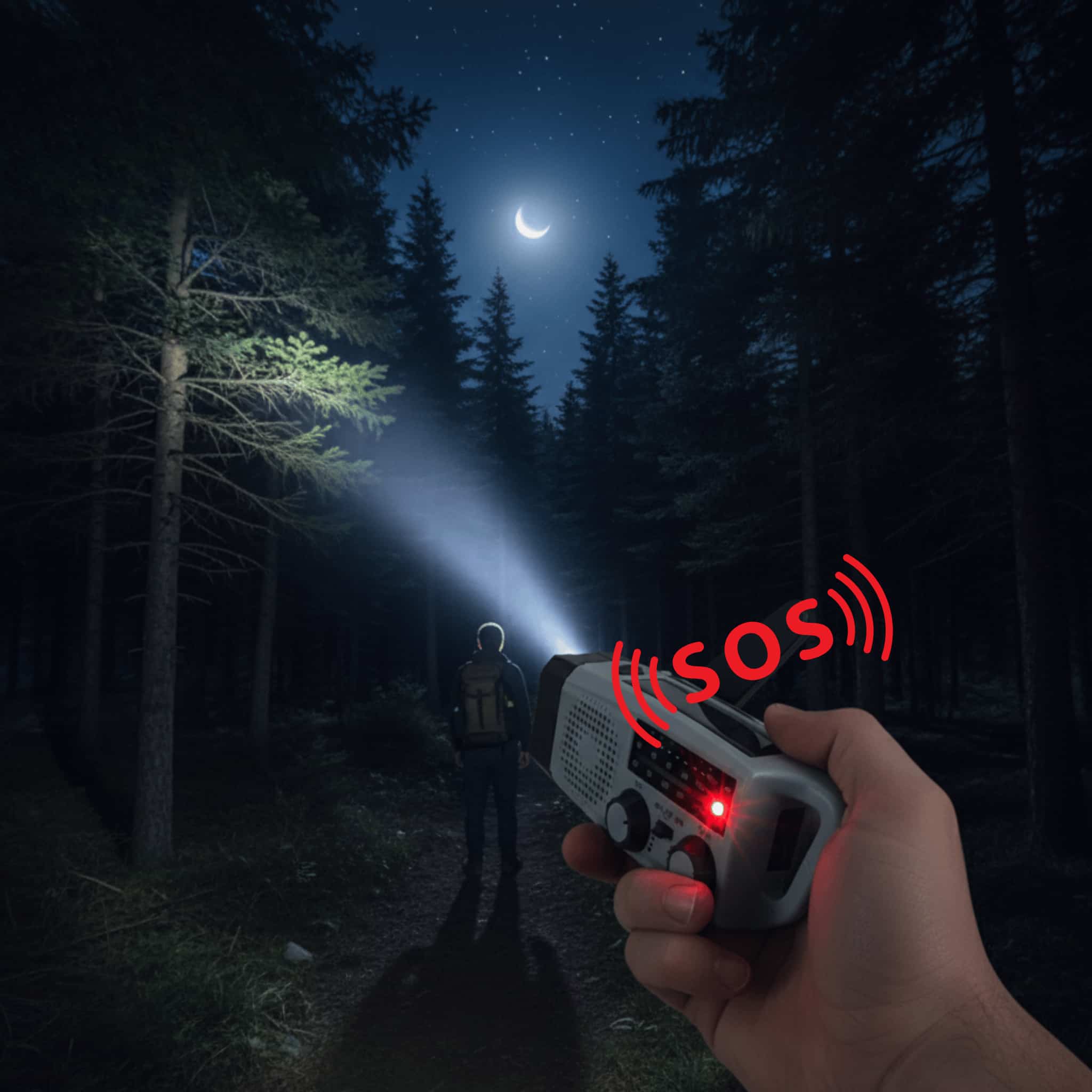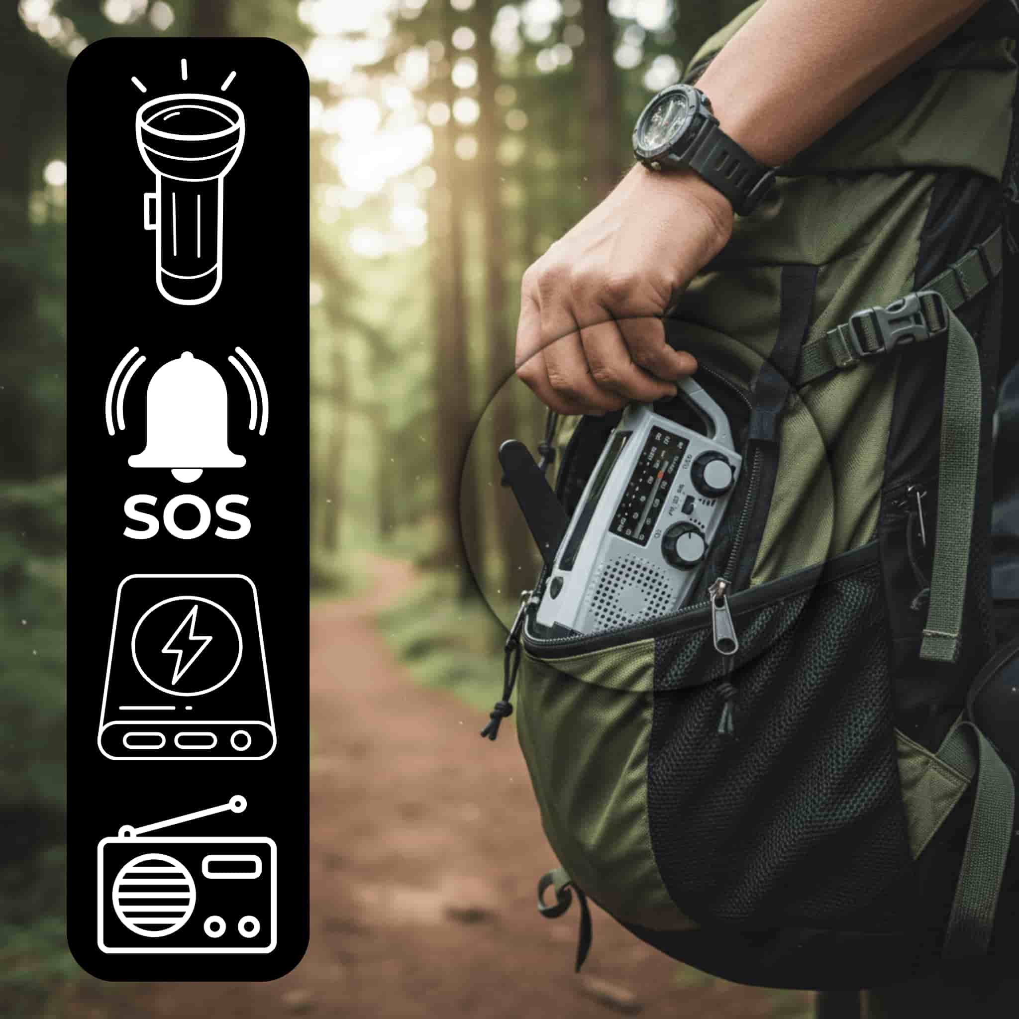 Du hast ein leistungsstarkes Radio, eine hell leuchtende Taschenlampe und eine SOS-Funktion jederzeit griffbereit in einem Gerät.