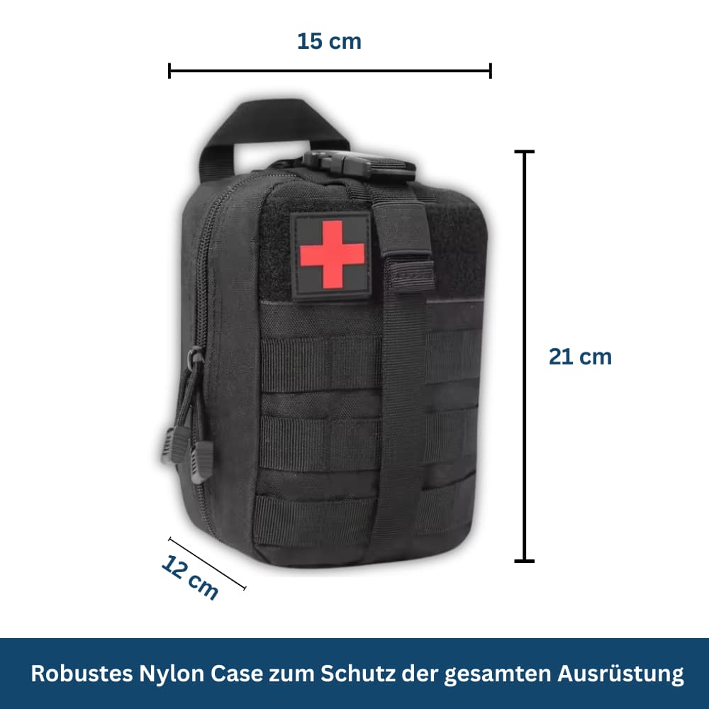 Dieses Set vereint umfassende Erste Hilfe Ausstattung, hochwertige Survival Werkzeuge und praktische Outdoor Essentials, auf die du dich jederzeit verlassen kannst.