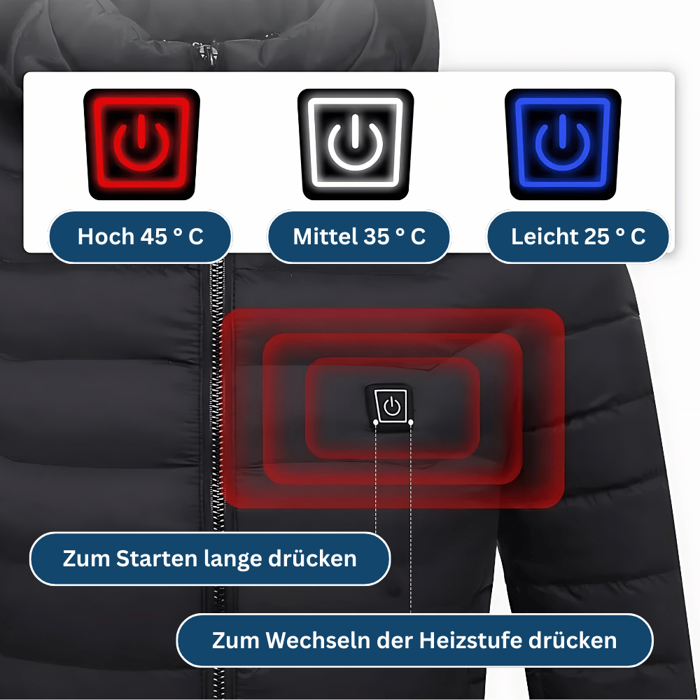 Mit 9 Heizzonen sorgt sie innerhalb weniger Sekunden für spürbar gleichmäßige Wärme – ganz ohne dicke Schichten oder klobige Kleidung.