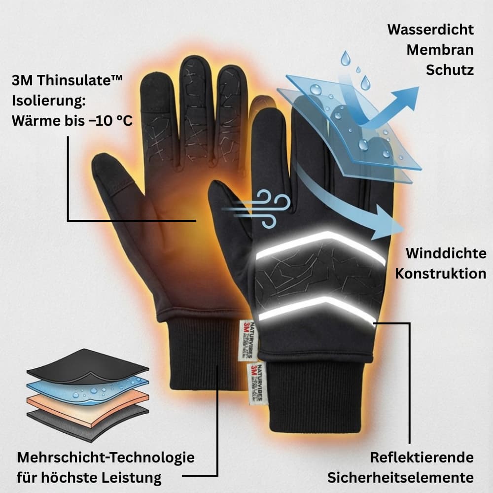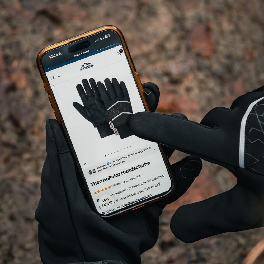 Die ThermoPolar Handschuhe von NaturVibes bieten dir zuverlässigen Schutz vor Kälte, Wind und Nässe – selbst bei Temperaturen bis –10 °C.