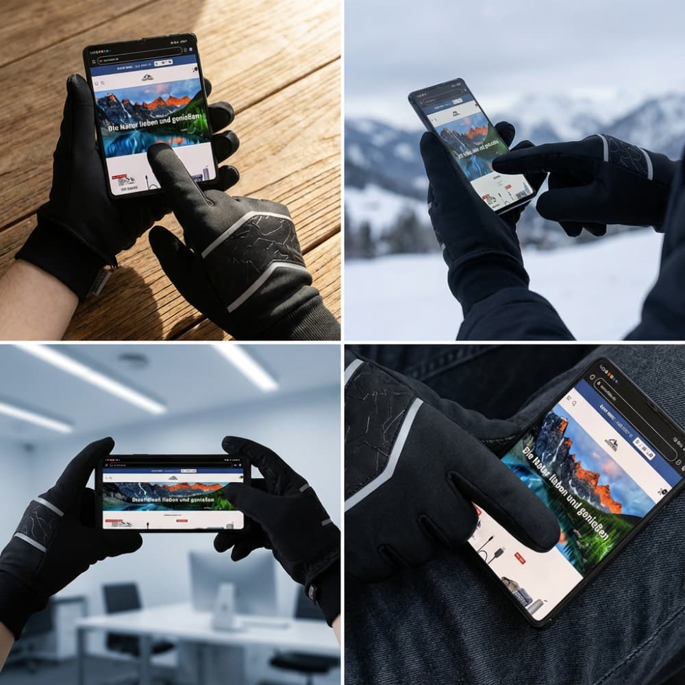Dank der Touchscreen-fähigen Spitzen an Daumen und Zeigefinger kannst du Smartphone, Smartwatch oder GPS navigieren, ohne die Handschuhe auszuziehen – ideal bei kalten Temperaturen.