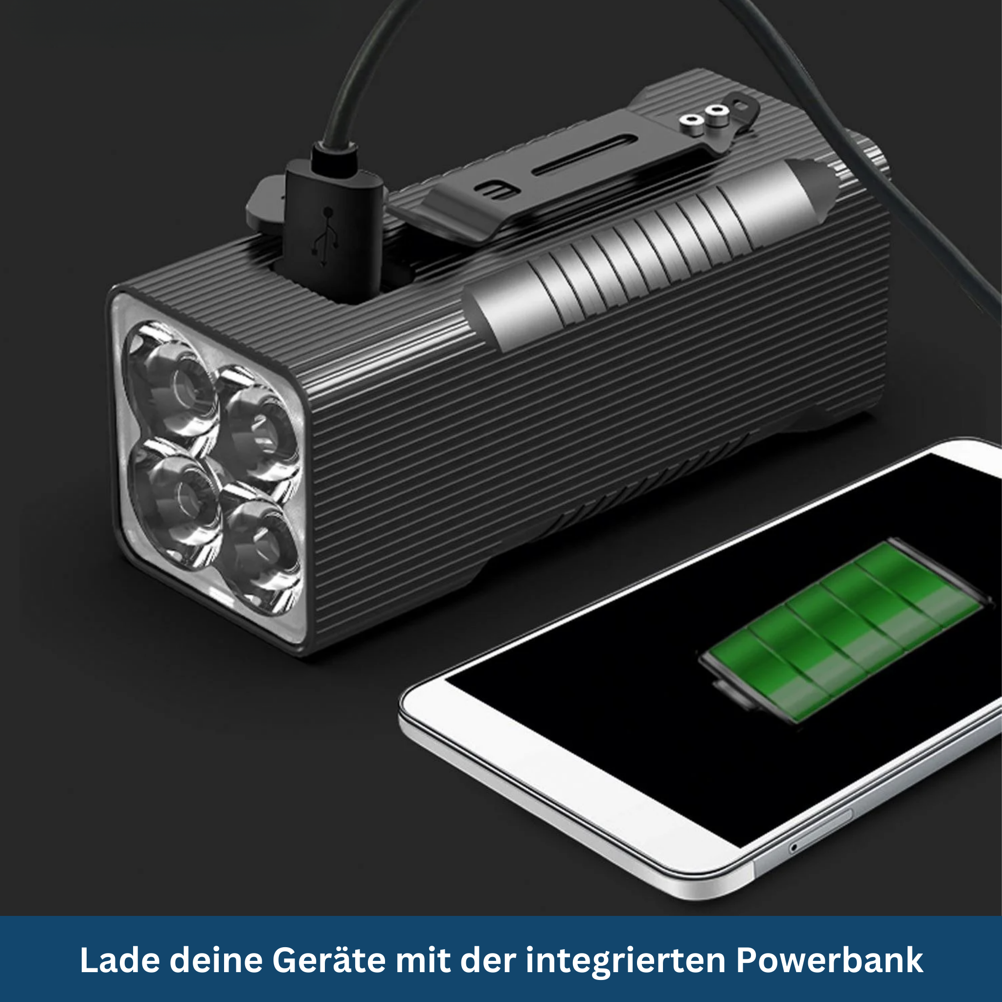 Im Notfall lässt es sich als Taschenlampe verwenden und dient gleichzeitig als Powerbank, sodass du immer eine zuverlässige Energiequelle dabei hast.