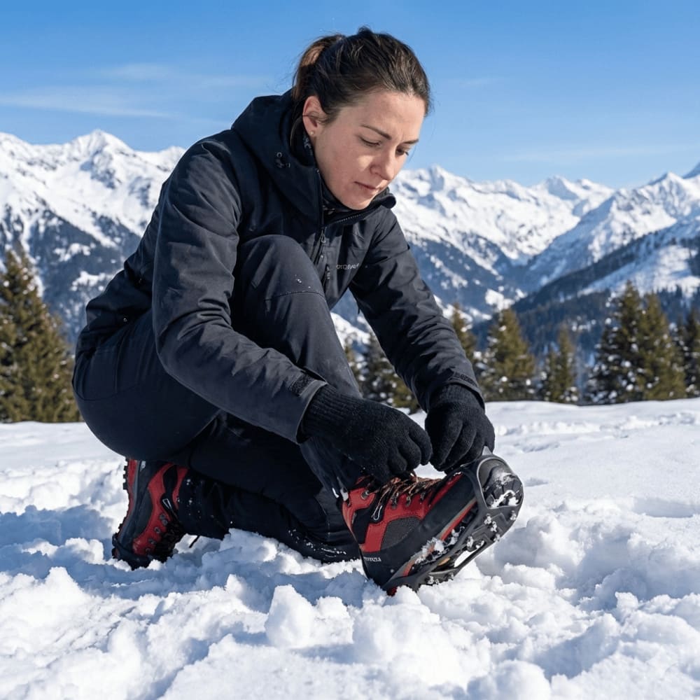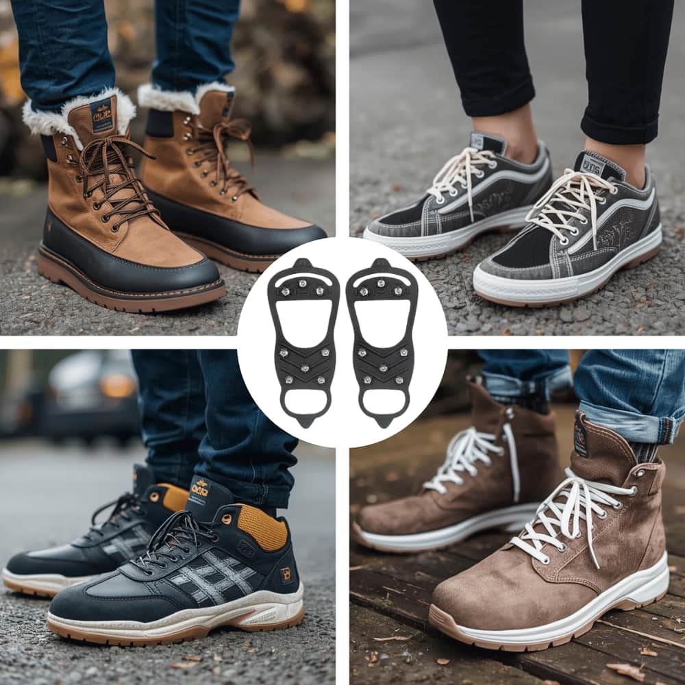 Ob Wanderschuhe, Sneaker, Arbeitsschuhe oder Freizeitschuhe, die Spikes liegen eng am Schuh an und sitzen sicher, ohne zu verrutschen.