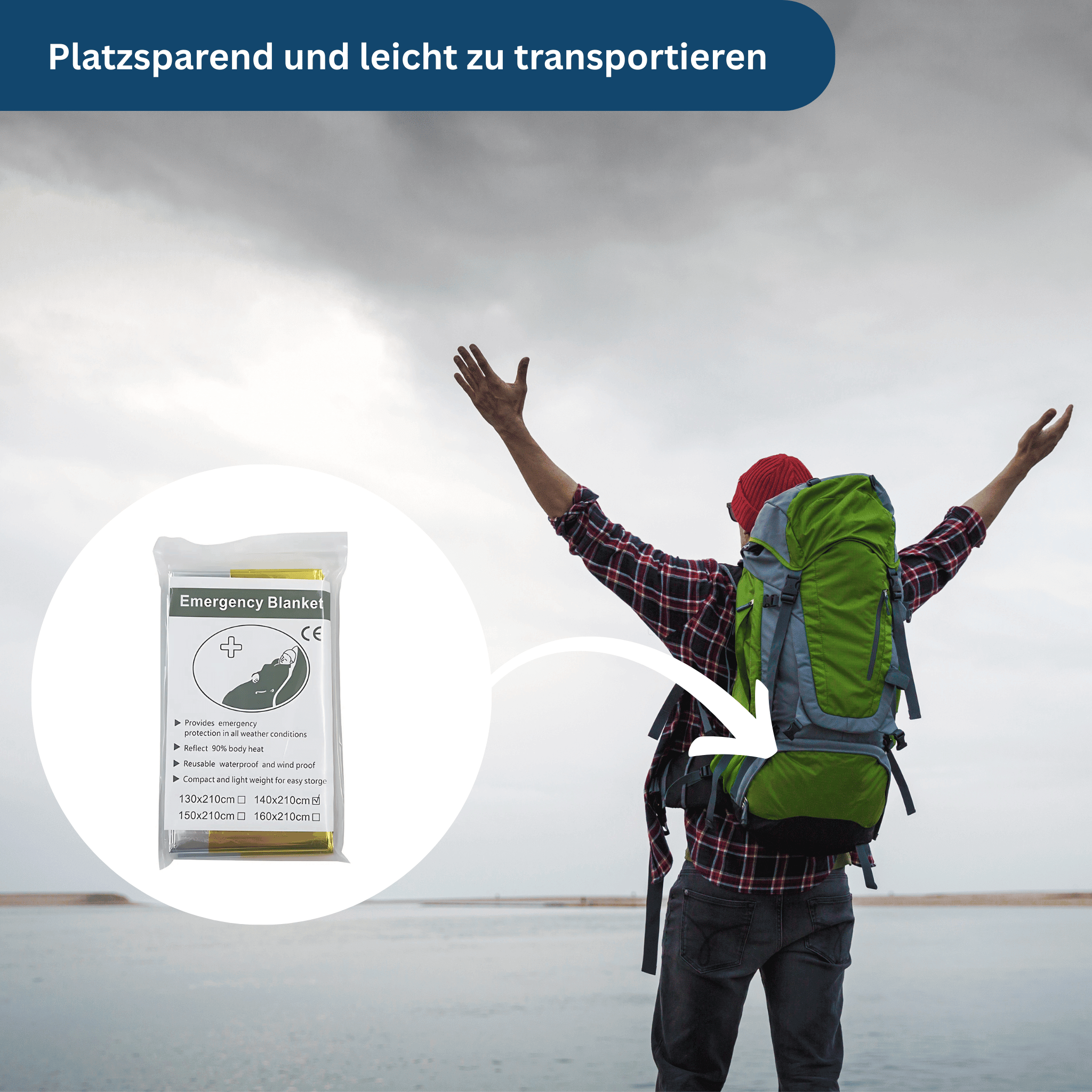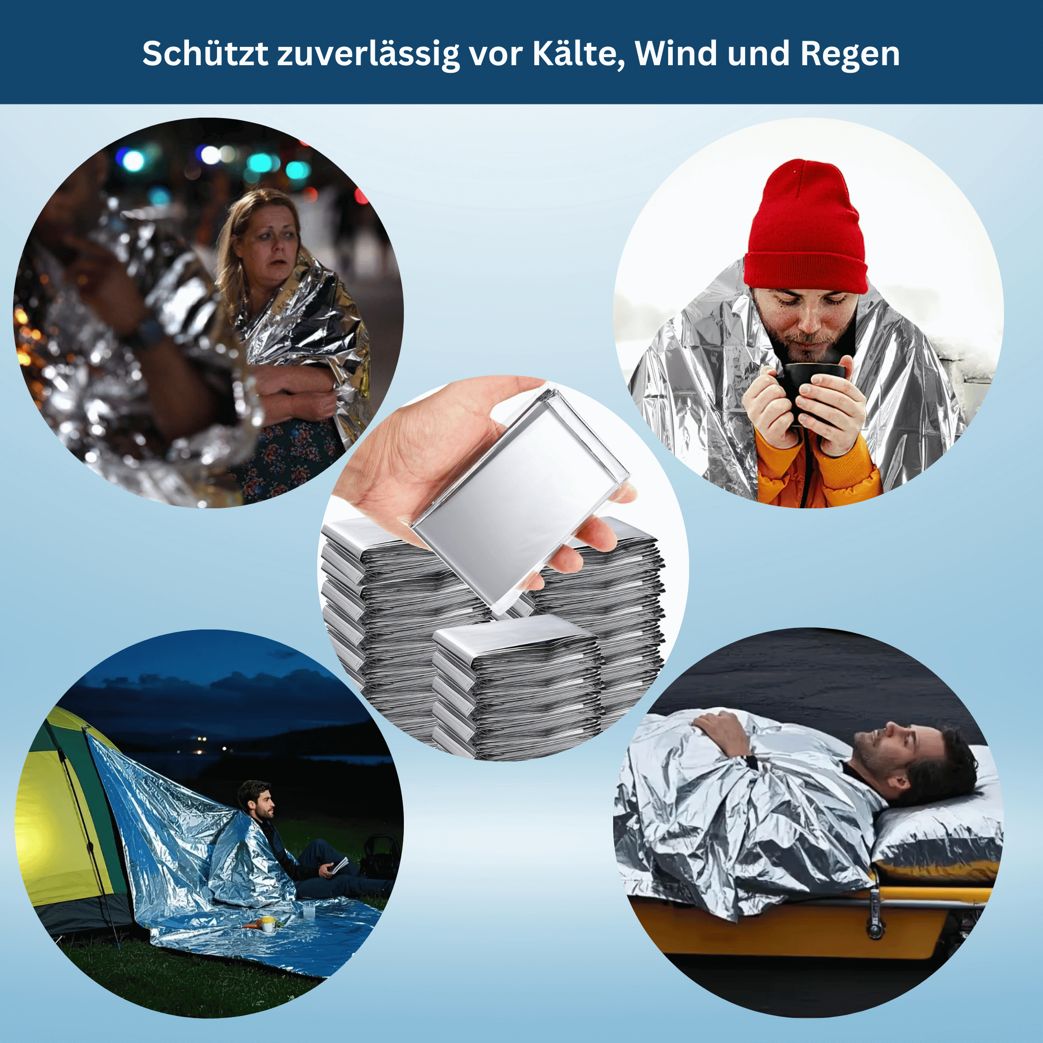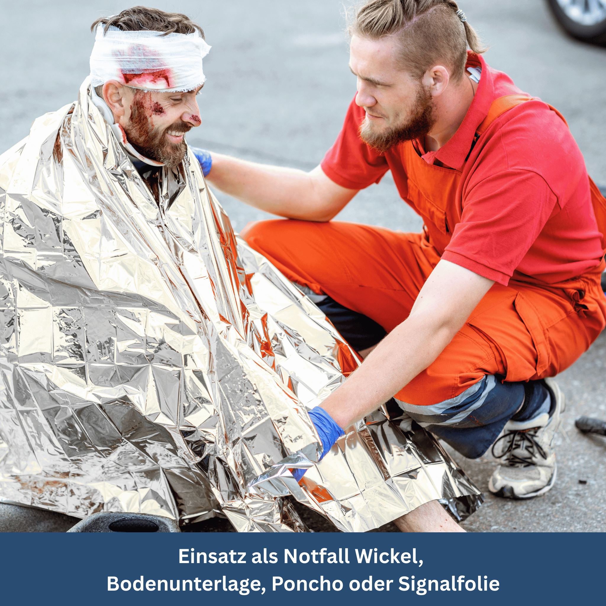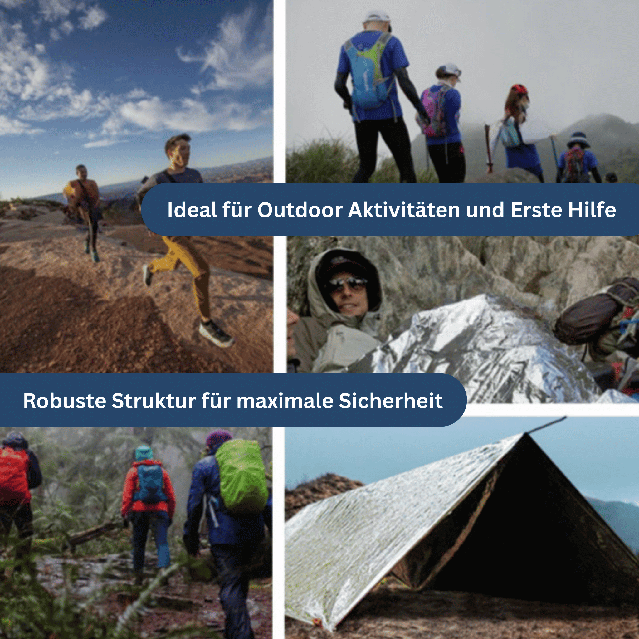 Ob beim Wandern, Camping oder in Notsituationen, diese hochwertige Notfalldecke schützt dich zuverlässig vor Kälte, Wind und Regen und unterstützt dich dabei, in kritischen Momenten sicher zu bleiben.
